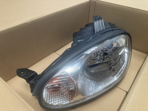 車検に通るためには殻割りして徹底的に修復する必要がありますが、幸いまだ新品のヘッドライトが出るので交換します。いくら手を入れても新品にはかないませんし。